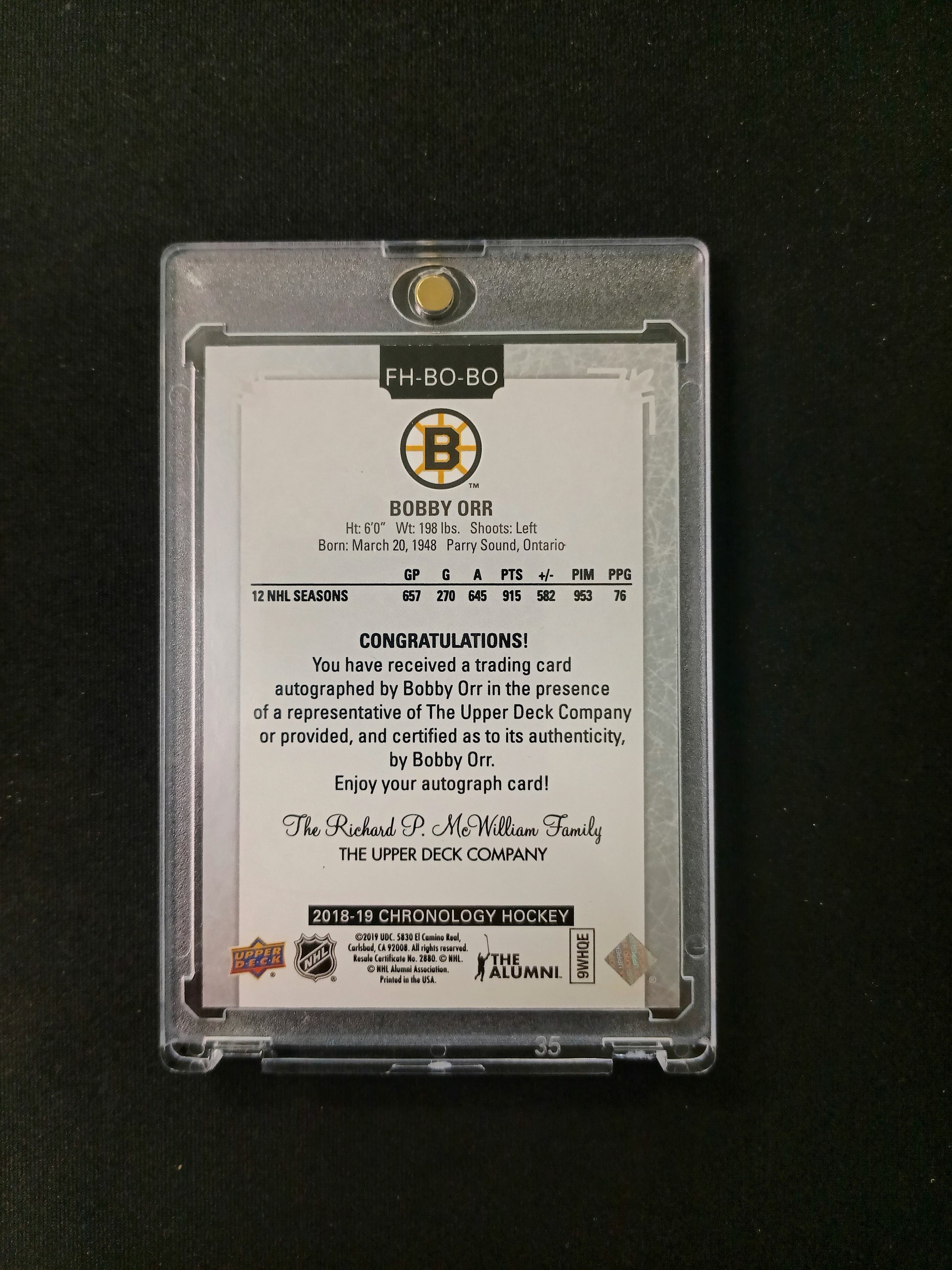 Bobby Orr #FH-BO-BO 2018-19 Auto Chronology