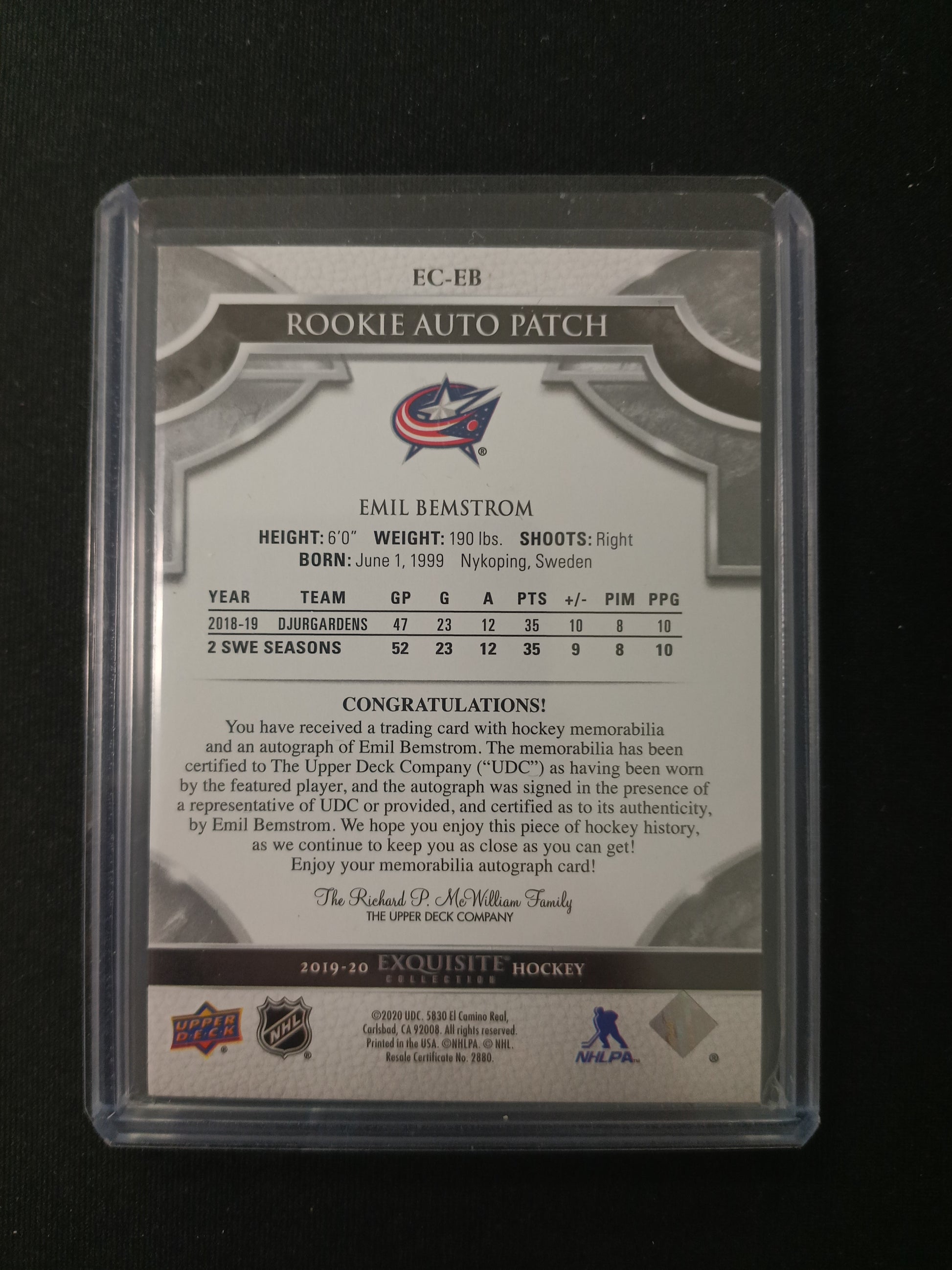 Emil Bemstrom - Columbus Blue Jackets #EC-EB Rookie Auto Patch