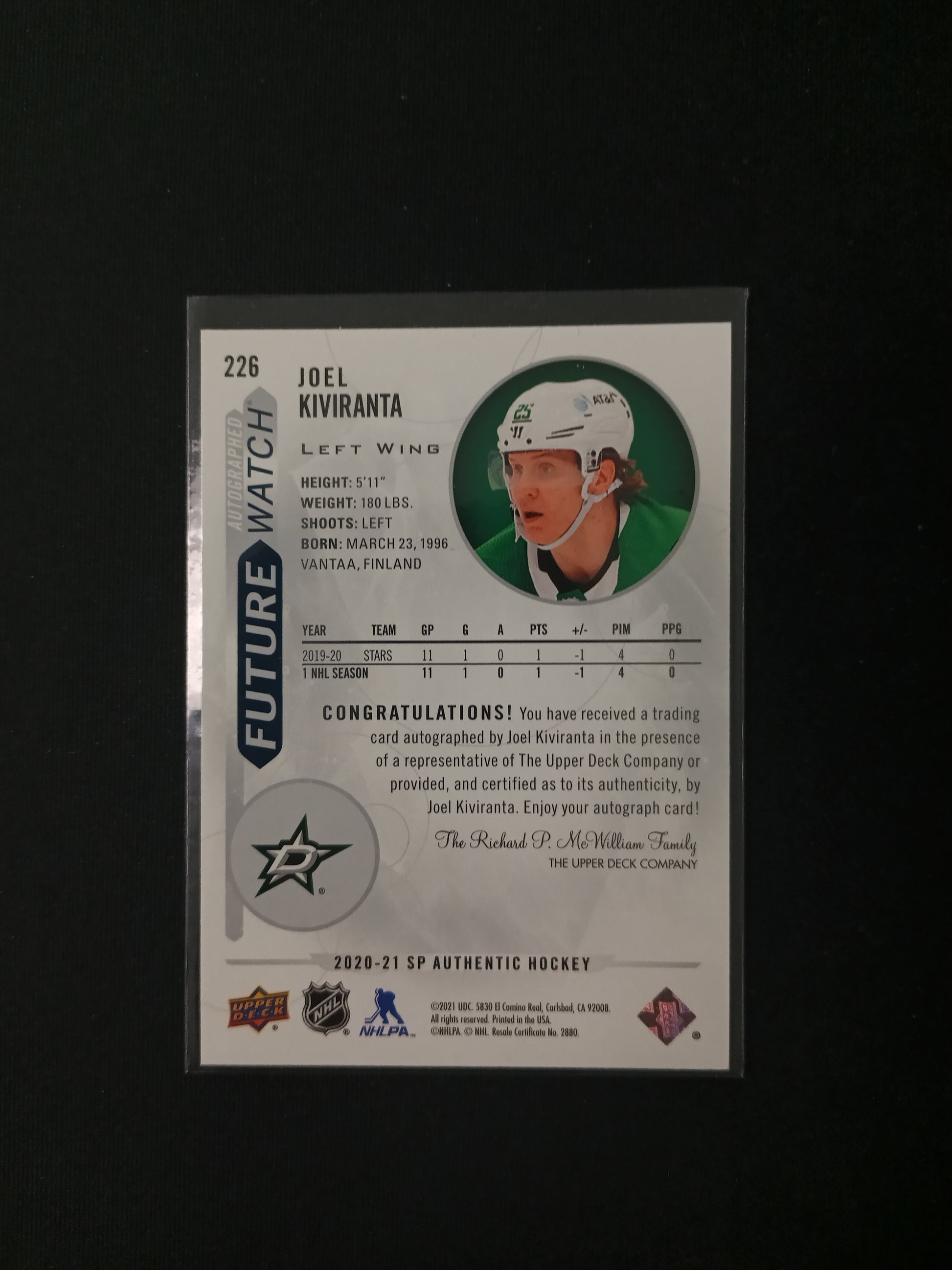 Joel Kiviranta - Dallas Stars #226 Future Watch Auto FWA