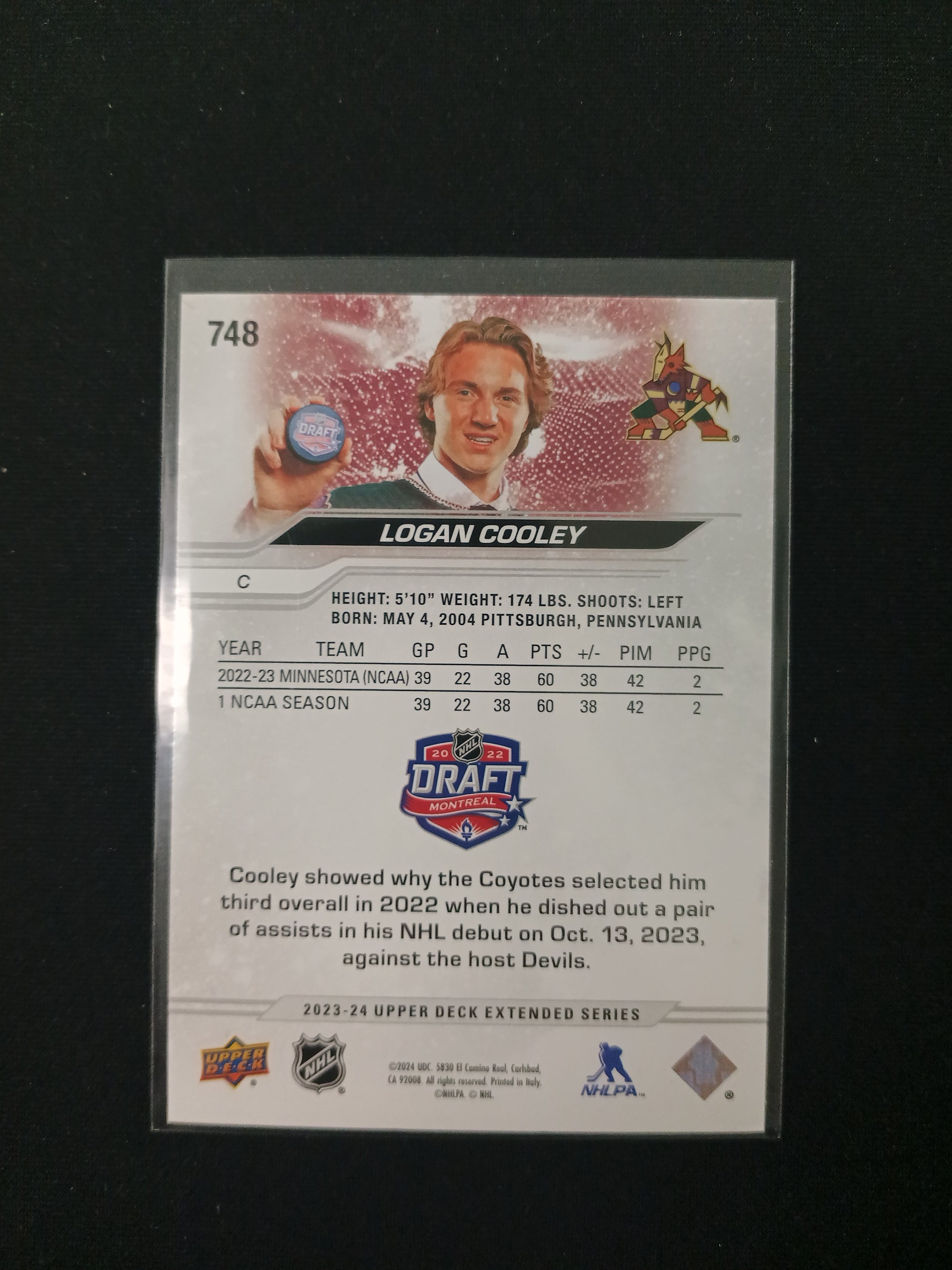 Logan Cooley - Arizona Coyotes #748 2022 Draft Montreal Outburst