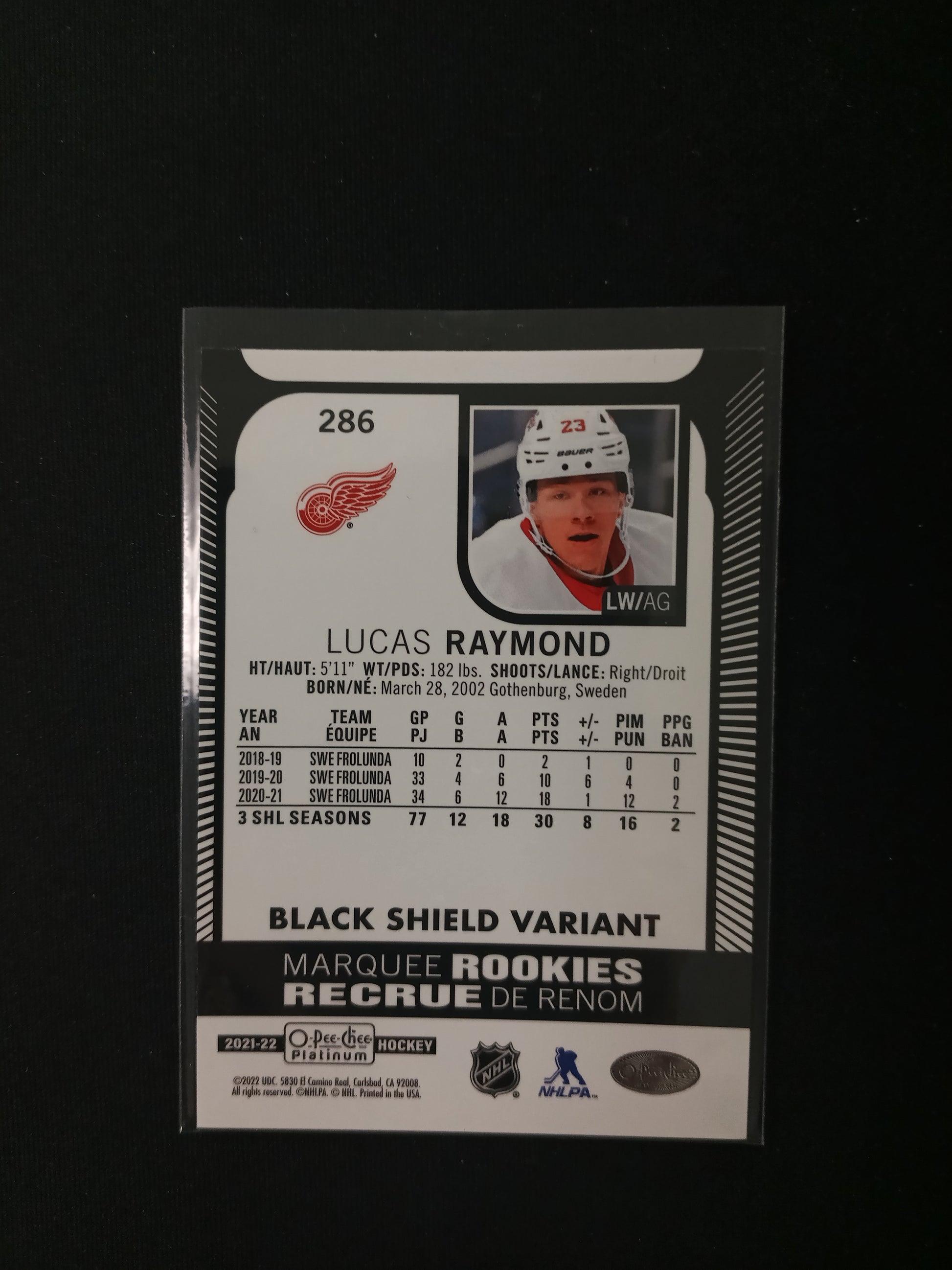 Lucas Raymond #286 Marquee Rookies - Black Shield