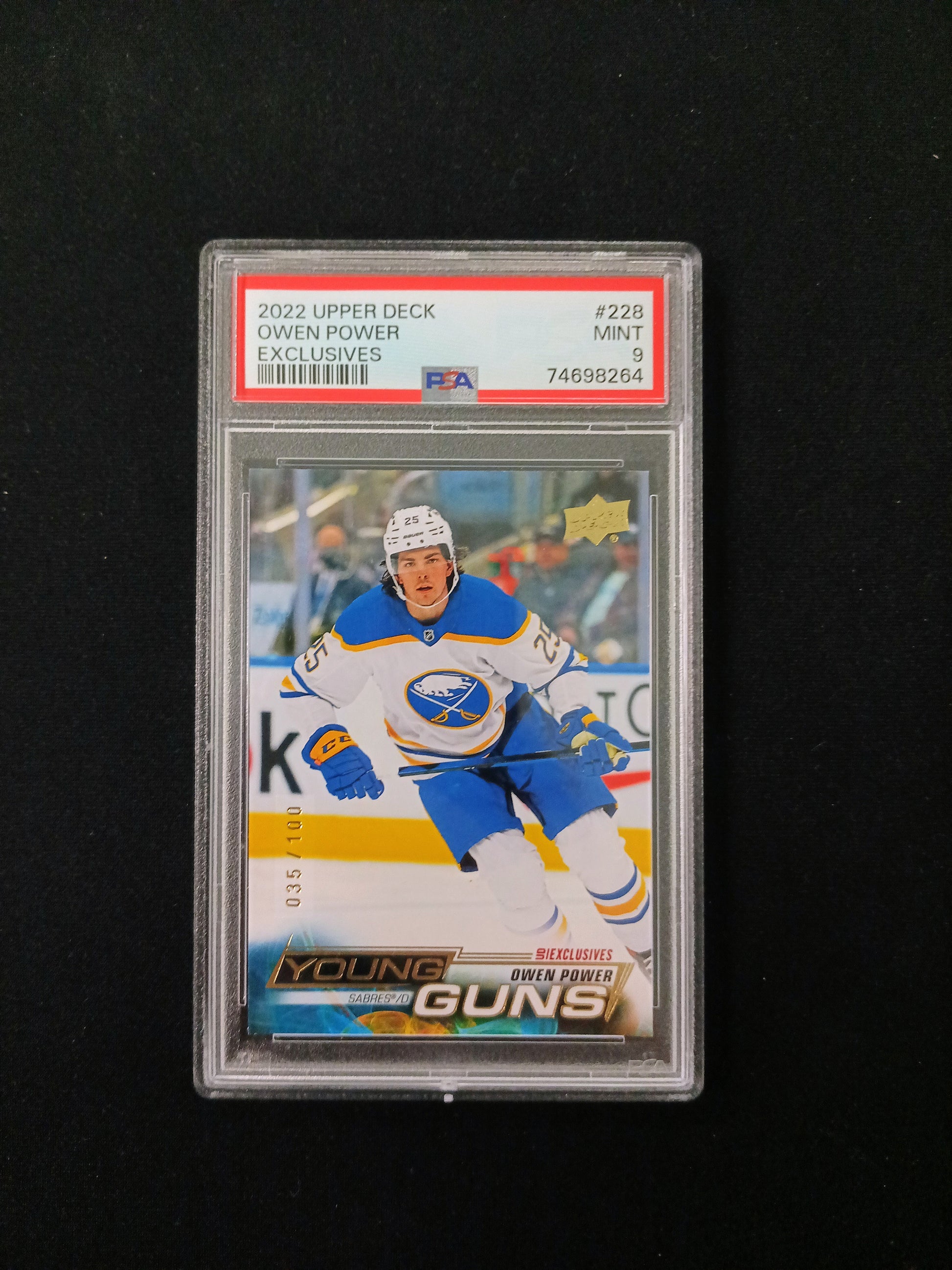 [PSA 9] 035/100 Owen Power #228 Young Guns 2022-23 Upper Deck Exclusives Series 1 Hockey