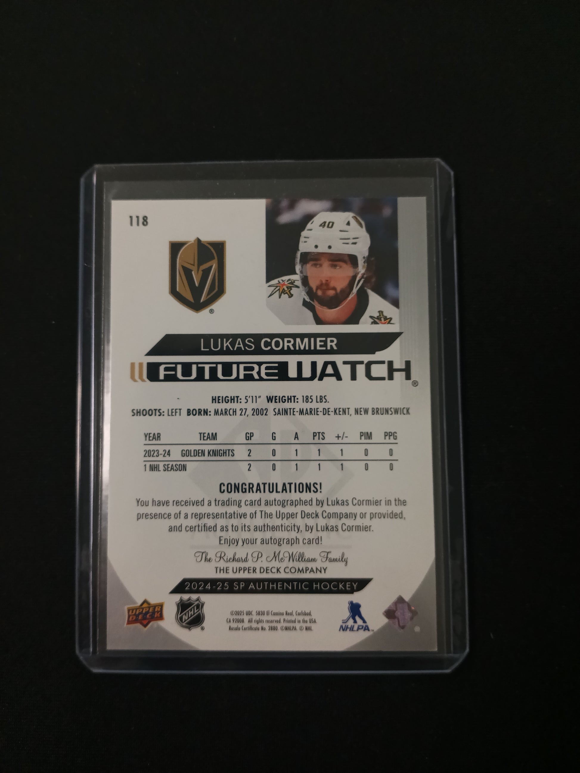 Lukas Cormier - Vegas Golden Knights #118 Future Watch Auto FWA